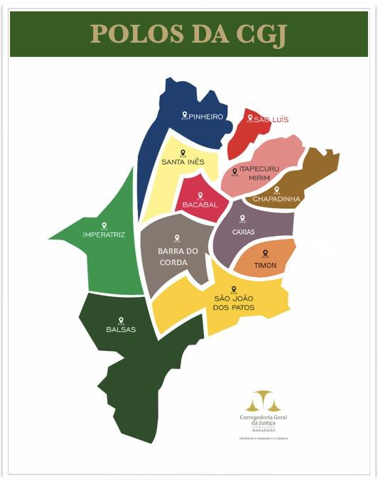 A Corregedoria Geral da Justiça (CGJ-MA) reorganizou os polos judiciais, que aglutinam os municípios maranhenses em áreas geográficas criadas para auxiliar o órgão na melhor distribuição e organização dos serviços administrativos direcionados às comarcas, varas e juizados em todo o Estado. Com a mudança, o Maranhão passou a ter doze polos judiciais.
