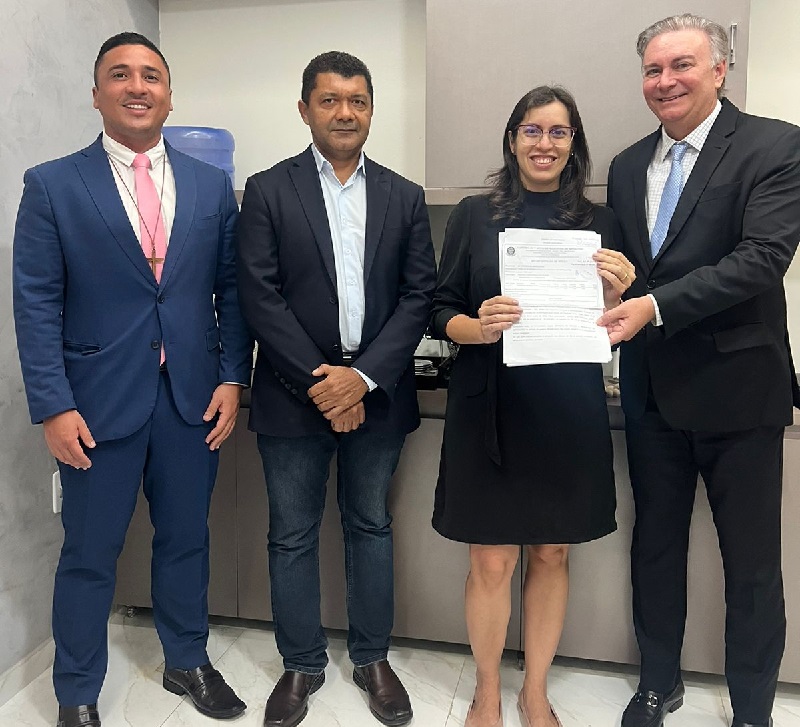 O corregedor compareceu ao cartório do 7° Ofício de Imperatriz, acompanhando a entrega pelos oficiais do mandado de imissão na posse que será averbado à matrícula da área, consolidando a propriedade em favor do Município. Na assinatura, acompanharam o corregedor os juízes Douglas Lima da Guia, coordenador do Núcleo de Regularização Fundiária da CGJ/MA, Delvan Tavares Nascimento, diretor do Fórum de Imperatriz, Daniel Macedo, Procurador do Município de Imperatriz, e Guiomar Bittencourt, cartorária titular do 7º Ofício.