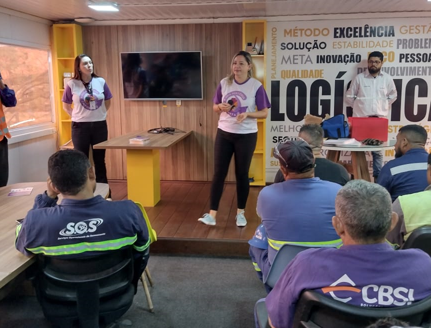Os funcionários da empresa terceirizada Sodexo Facilities, prestadora de serviços para a Companhia Vale, foram o público-alvo de ações voltadas ao enfrentamento da violência contra a mulher durante os dias 30 e 31 de agosto. Logo no primeiro dia, 70 colaboradores reuniram-se para participar de uma roda de conversa, abordando temas como tipos de violência, medidas protetivas de urgência, canais de denúncia e outras temáticas relacionadas à Lei Maria da Penha.