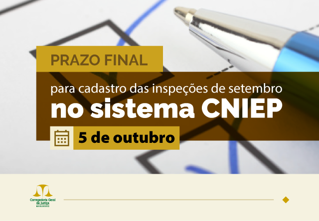 Em setembro, as inspeções devem ser feitas obrigatoriamente com base no Caderno 1 – Aspectos Gerais, disponível no Manual de Inspeções Judiciais, e registradas exclusivamente por meio do CNIEP. O sistema está disponível no site: cniep.cnj.jus.br