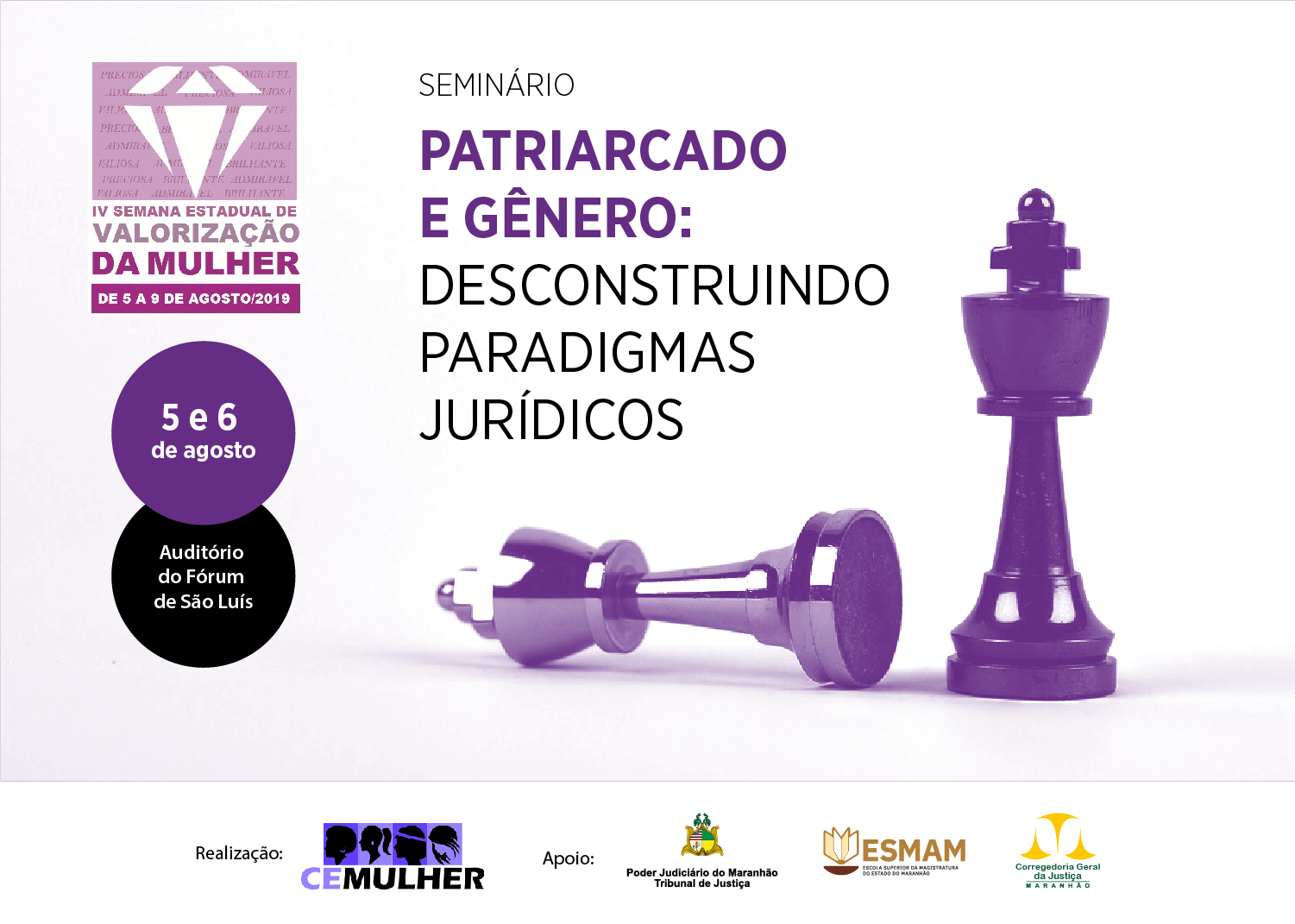 A Coordenadoria Estadual da Mulher em Situação de Violência Doméstica do Tribunal de Justiça do Maranhão (CEMULHER-TJMA), com o apoio da Escola Superior da Magistratura (ESMAM), promove nos dias 5 e 6 de agosto, o Seminário “Patriarcado e Gênero: desconstruindo paradigmas jurídicos”. A programação integra a 4ª Semana Estadual de Valorização da Mulher.