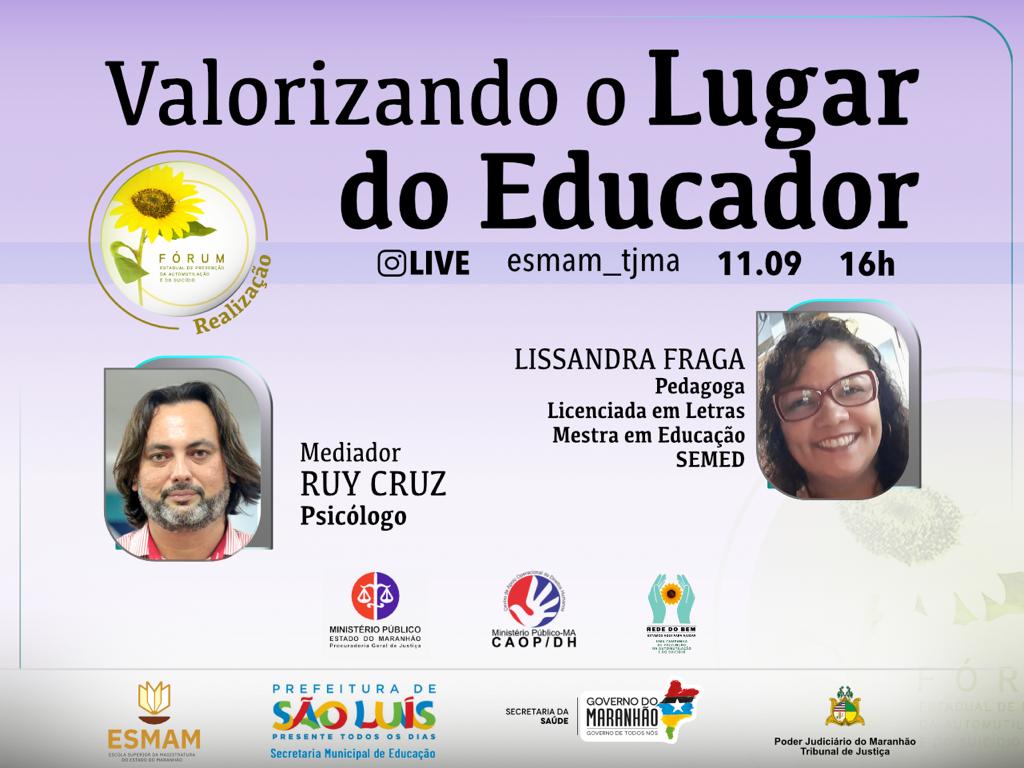 Qual o papel do educador em tempos de crise? A professora e mestre em Educação, Lissandra Fraga, da Secretaria Municipal de Educação de São Luís, abordará o tema, nesta sexta-feira (11), às 16 horas, encerrando a série de lives realizada pela Escola Superior da Magistratura do Maranhão (ESMAM), com transmissão ao vivo, pelo perfil @esmam_tjma no Instagram, com direito a certificação.