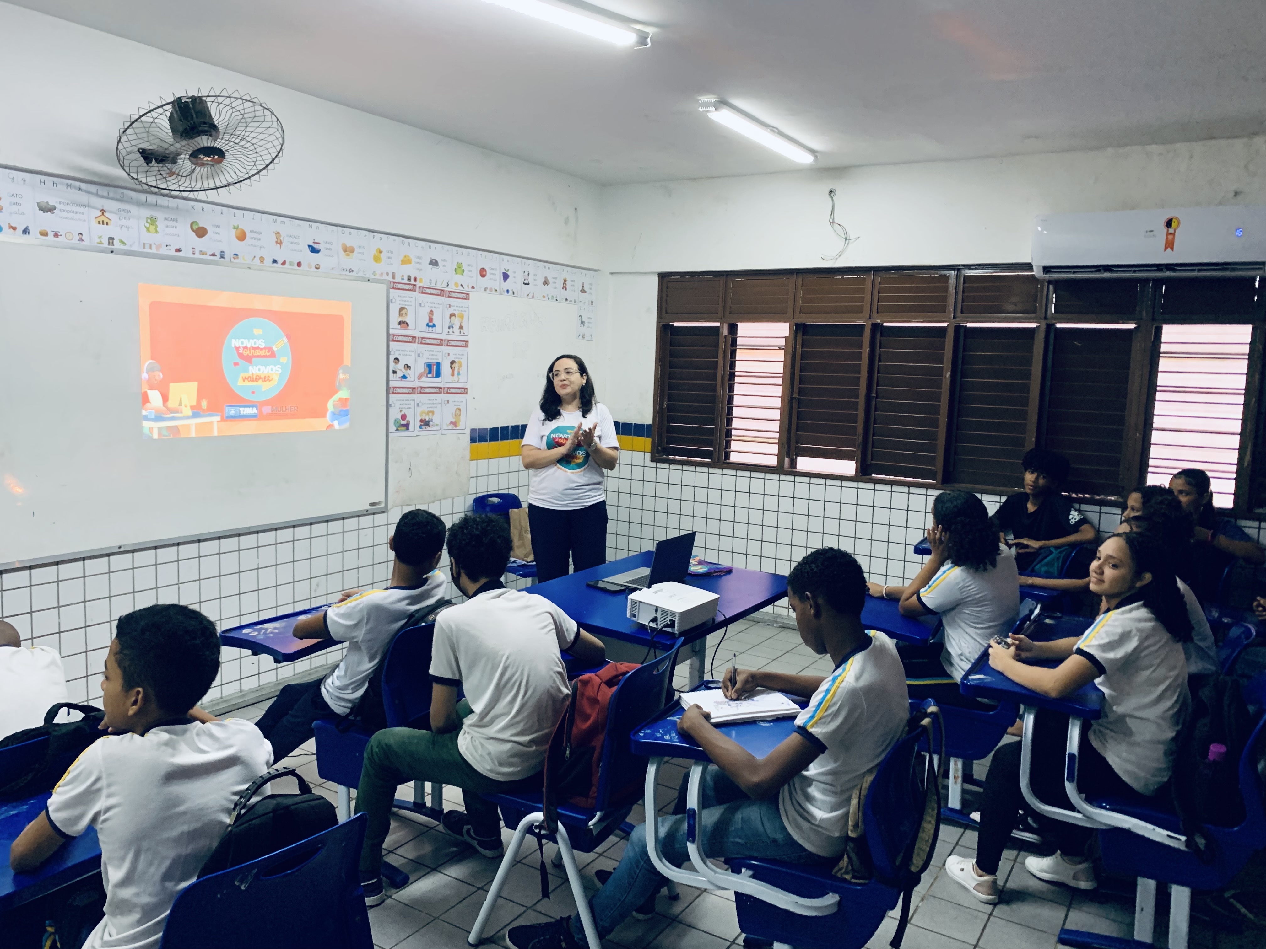 Entre os dias 27 e 29/5, uma equipe da Coordenadoria Estadual da Mulher em Situação de Violência Doméstica e Familiar do Tribunal de Justiça do Maranhão (Cemulher/TJMA) retornou à U.E.B Monsenhor Frederico Chaves, localizada no bairro do São Francisco, para promover novas ações do projeto “Novos Olhares, Novos Valores”.