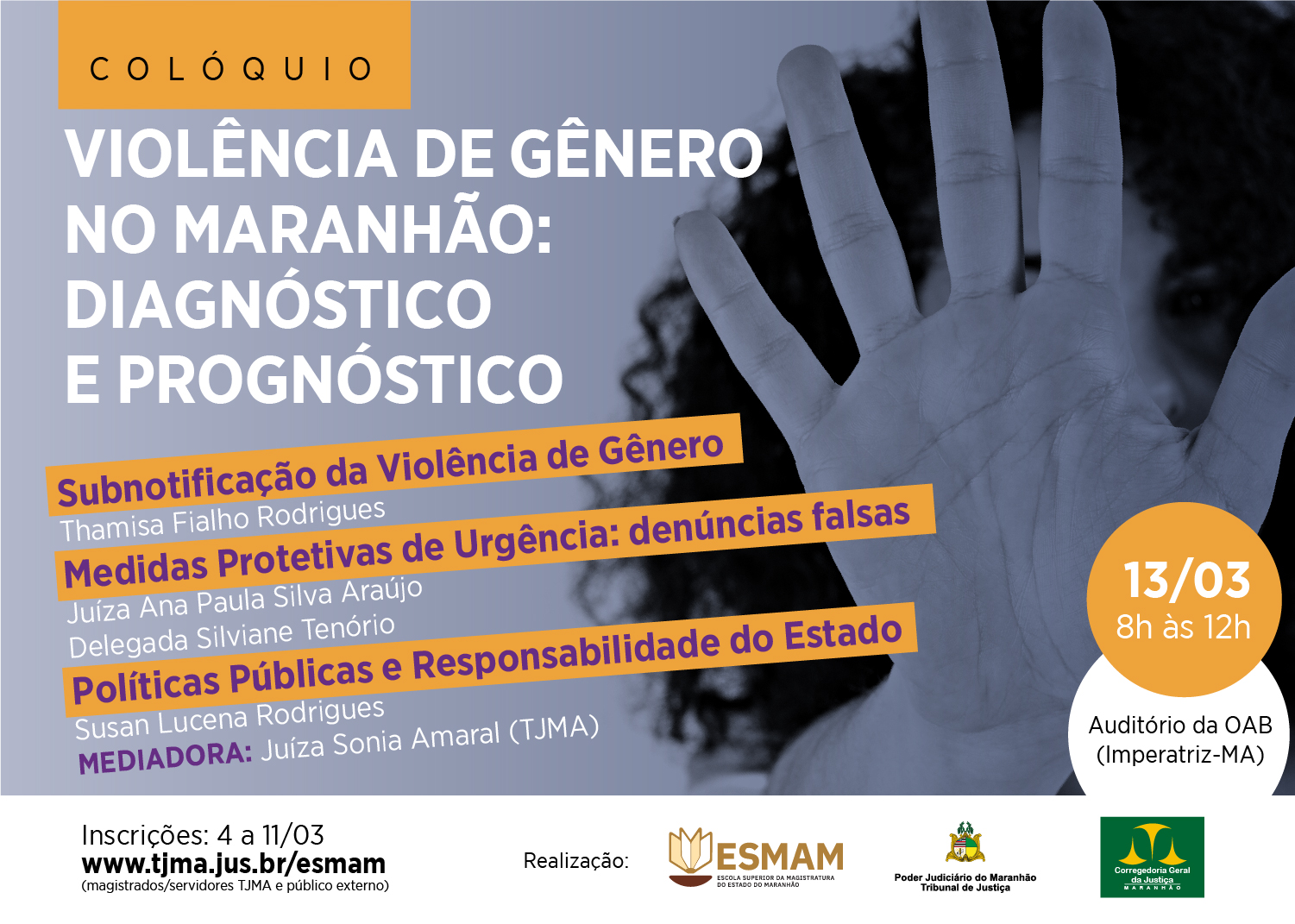 As iniciativas e políticas públicas idealizadas para o enfrentamento, eventuais problemas e a superação dos desafios da violência de gênero serão discutidos durante o colóquio “Violência de Gênero no Maranhão: diagnóstico e prognóstico”, que acontecerá no dia 13 de março, das 8h às 12h, em Imperatriz, no auditório da Ordem dos Advogados do Brasil – OAB (Rua Simplício Moreira, 1083 – Centro).