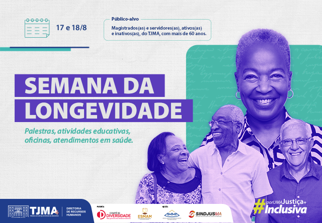 O Poder Judiciário do Maranhão abriu as inscrições para os atendimentos que serão disponibilizados durante a Semana da Longevidade, que acontece nos dias 17 e 18 de agosto na Associação dos Magistrados (AMMA), localizada na Rua Búzios, s/n, Calhau. A ação visa promover qualidade de vida e reflexões sobre o envelhecimento ativo e saudável, bem como apresentar o Programa de Preparação para a Aposentadoria do Tribunal de Justiça (TJMA).