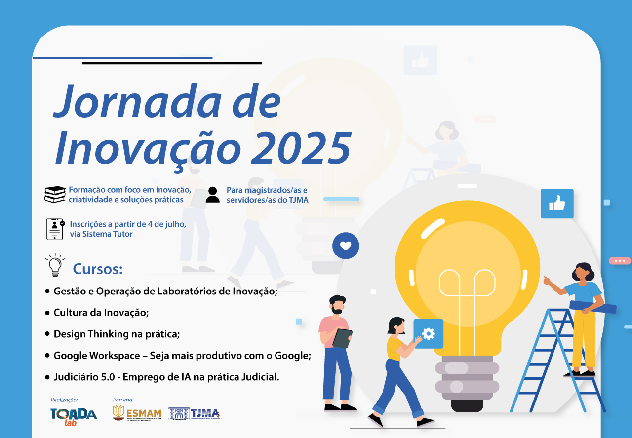 O Tribunal de Justiça do Maranhão (TJMA), por meio do Laboratório de Inovação – ToadaLab, com apoio da Escola Superior da Magistratura do Maranhão (ESMAM), abriu as inscrições para a Jornada de Inovação 2025, iniciativa voltada ao desenvolvimento de competências essenciais para a construção de soluções inovadoras no âmbito do Poder Judiciário.