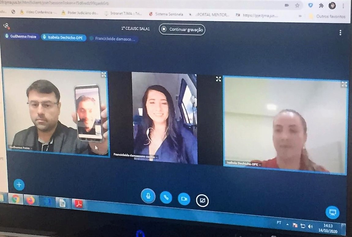 A audiência pré-processual (sem ação judicial) foi devidamente conduzida pelo conciliador e instrutor da Justiça, capacitado pelo Conselho Nacional de Justiça (CNJ), Guilherme Freire, e acompanhada pela defensora pública Isabela Dechiche Libâneo de Sousa Sorvos, pela plataforma de videoconferência disponibilizada no Portal do Judiciário maranhense (www.tjma.jus.br), e pelo aplicativo WhatApp, por videochamada.