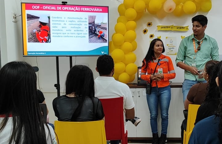 O Supervisor de Operação Ferroviária da Vale, Gustavo Malheiros, apresentou as instalações da Unidade de Açailândia e falou sobre os cargos e funções existentes, desde o programa de estagiários e iniciantes na carreira profissional (trainees) nas áreas mecânica, eletromecânica, engenharia, dentre outras. Malheiros também parabenizou as estudantes visitantes, que foram campeãs da Olimpíada de História realizada na cidade.