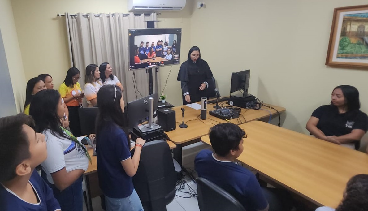 Com o objetivo de aproximar as crianças do 5º e 6º ano fundamental do Poder Judiciário, proporcionando conhecimento sobre suas funções e a importância da proteção da infância, a Vara Única da Comarca de Carutapera deu início ao projeto “Conhecendo o Judiciário: Protegendo Nossas Crianças”. Capitaneado pela juíza titular Jéssica Gomes Dias, a iniciativa deu o primeiro passo, ao receber no último dia 30 de maio, no Fórum Dr. Pedro Emanuel de Oliveira, alunos da Escola Moacir Heráclito dos Remédios e da Unidade Escolar Sonho Dourado.