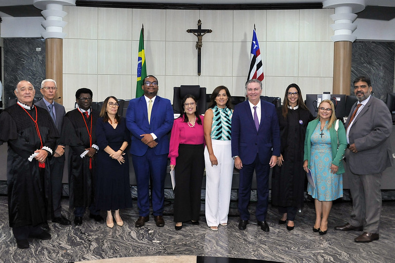 A diretora-geral do Tribunal de Justiça do Maranhão, juíza Ticiany Palácio, leu os termos de compromisso e posse com a presença de magistrados e magistradas.