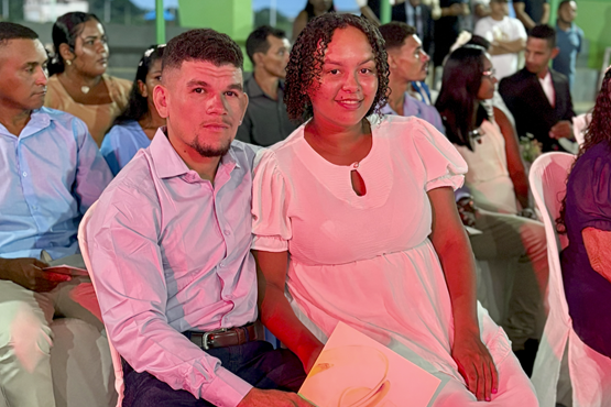 Já os mais jovens, Lucas Pereira Pacheco (25) e Shirley Ferneive Marinho (20), foto acima, destacaram a importância dos valores familiares e religiosos para a decisão de casar. “Esperamos que essa nova etapa seja marcada pelo companheirismo e evolução conjunta”, disseram.