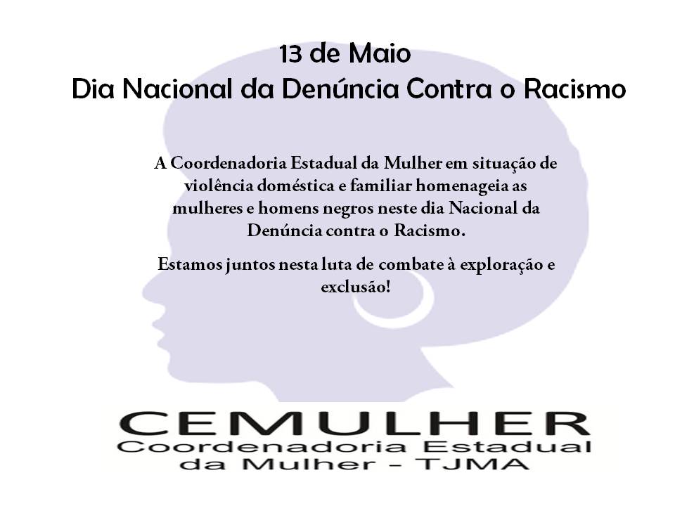 13 de Maio - Dia Nacional da Denúncia contra o Racismo