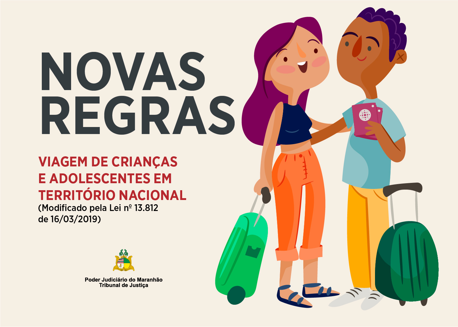 Em relação às viagens internacionais, continuam as mesmas regras, com necessidade de autorização dos pais com firma reconhecida em cartório. A autorização é exigida sempre que crianças e adolescentes brasileiros precisarem viajar para outros países desacompanhados, na companhia de apenas um dos pais ou acompanhados de terceiros. Os formulários padrão podem ser pegos na internet, no site do Tribunal de Justiça do Maranhão ou do Conselho Nacional de Justiça.