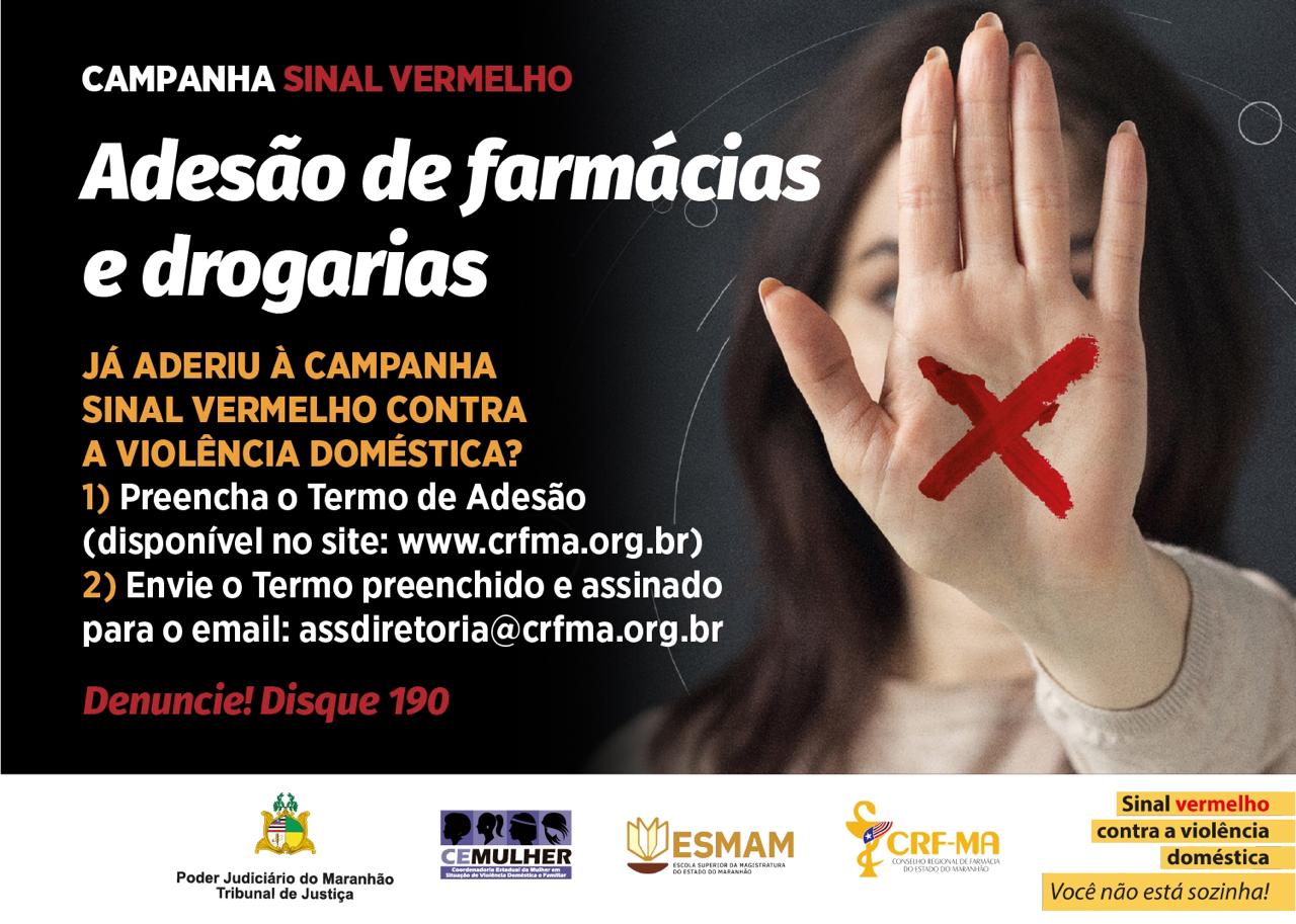 O Tribunal de Justiça do Maranhão - por meio da Coordenadoria Estadual da Mulher em Situação de Violência Doméstica e Familiar (CEMULHER/TJMA), presidida pelo desembargador Cleones Cunha - promove a campanha Sinal Vermelho contra a violência doméstica, em todo o Estado, em parceria com farmácias e instituições. A ação nacional, idealizada pela Associação dos Magistrados Brasileiros (AMB) e pelo Conselho Nacional de Justiça (CNJ), já conta com a adesão de mais de 10 mil drogarias e farmácias no país.