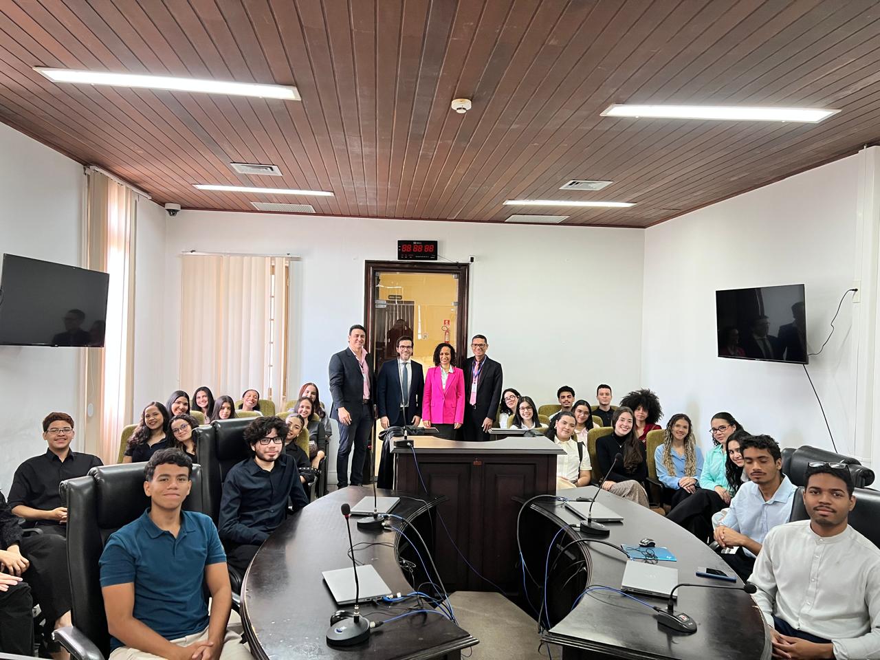 A atividade foi conduzida pelos servidores Fabiano Barbosa, Jonas França e Thiago Ramos. A programação contou com a participação do desembargador Ronaldo Maciel, que recebeu os/as estudantes na Ante-Câmara do Salão do Pleno e destacou a relevância da vivência imersiva no Tribunal para o fortalecimento da formação acadêmica.