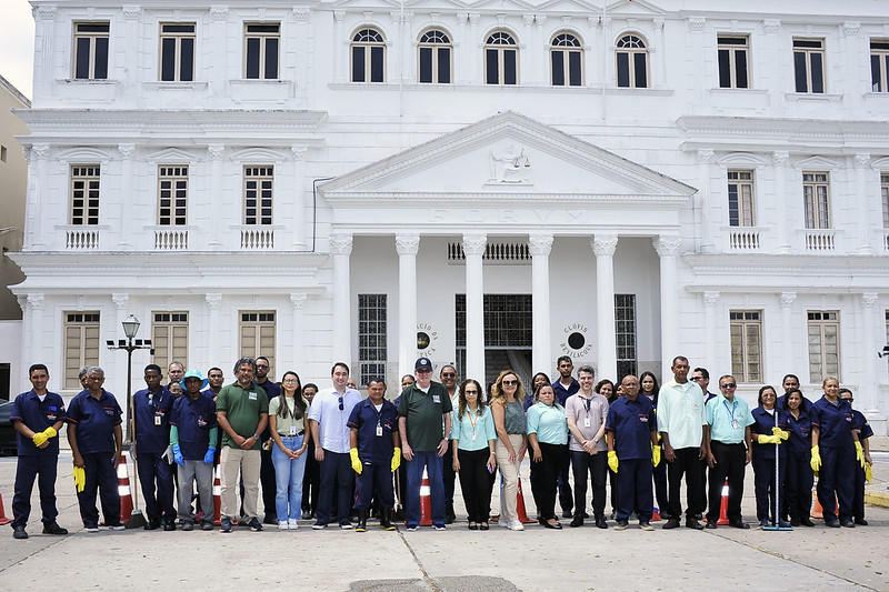 Durante o Dia Mundial da Limpeza (20/9), servidores, servidoras, colaboradores e colaboradoras participaram de um mutirão de limpeza nas dependências do Fórum.