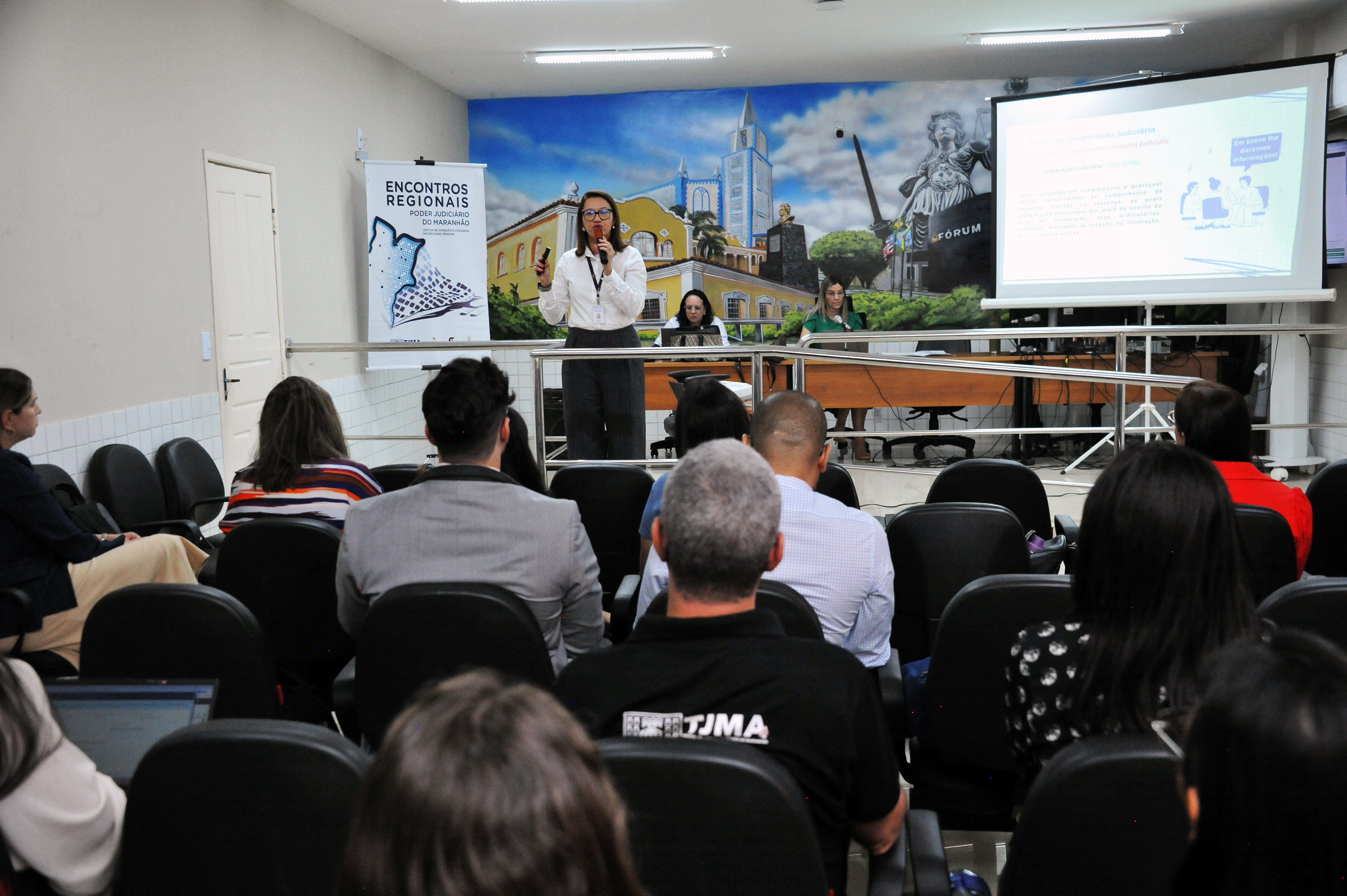 O programa Encontros Regionais tem como objetivo fomentar o diálogo entre a Mesa Diretora do Tribunal de Justiça do Maranhão (TJMA) e os profissionais que atuam na Justiça de 1º grau. A abertura foi conduzida pela auxiliar da Presidência e coordenadora de Planejamento Estratégico, juíza Tereza Nina, que relembrou a idealização da iniciativa pelo presidente do TJMA, desembargador Froz Sobrinho, no início da gestão, como um compromisso com a integração e a participação efetiva das equipes de cada comarca.
