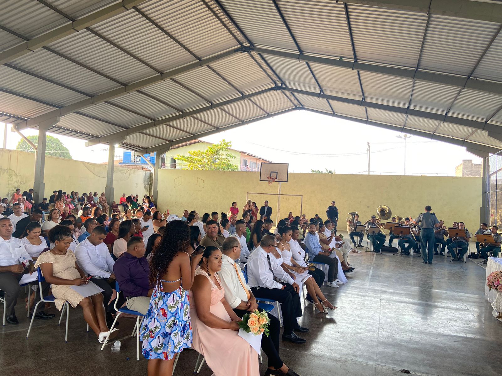 A ação foi encerrada com um casamento comunitário, realizado em parceria com o 2º Cartório de Registro Civil, beneficiando 50 casais da comunidade com a gratuidade do registro civil. A cerimônia ocorreu na Escola "Vicente Maia", onde os noivos foram recebidos em um espaço decorado para fotos, com a presença da banda da PMMA, brindes e um bolo decorativo.